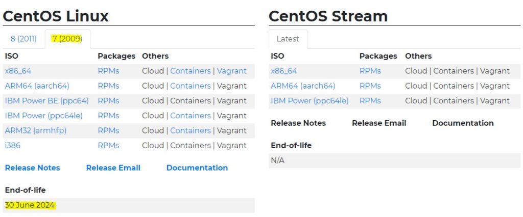 기존 Cent OS 7의 EOS 는 2024년까지.