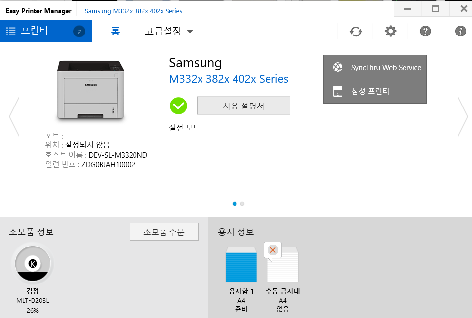 프린트 IP 설정 2022년 09월 21일 golgol [PC]HardWare 0 Remark : 사내에 DHCP 가 세팅 되어 있지 않고 컴퓨터에서 수동으로 아이피를 잡는 케이스인 경우 1.USB 로 컴퓨터 연결 2.https://www.samsungsvc.co.kr/download 들어가 Easy Printer Manager 다운로드 및 설치 3. Easy Printer Manager -> 네크워크 -> IP 설정