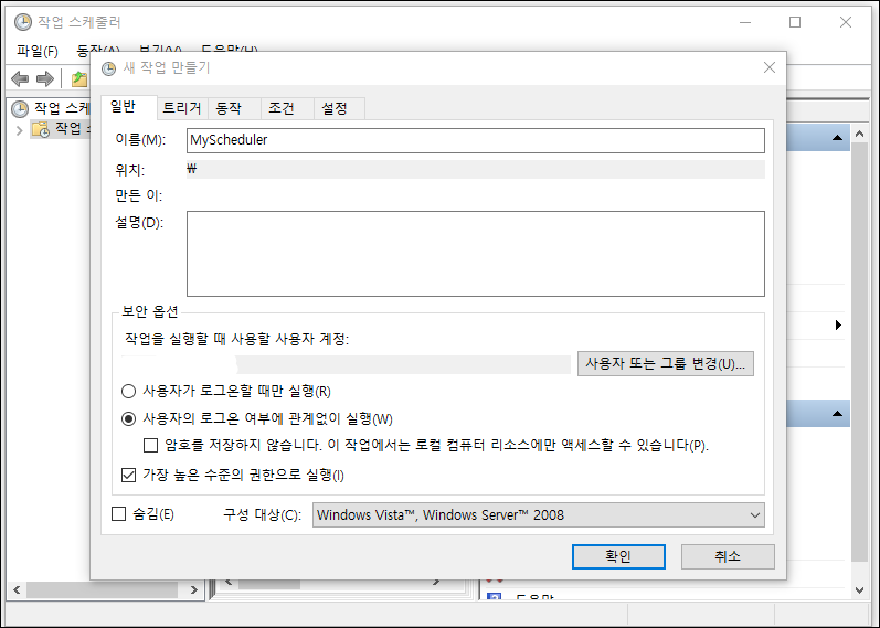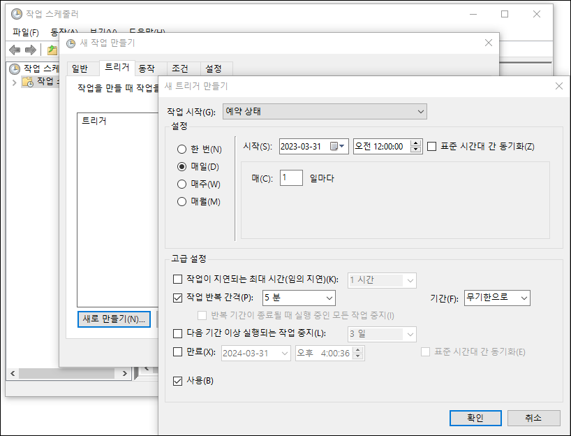 1.작업 스케줄러 열기 -> 새 작업 만들기