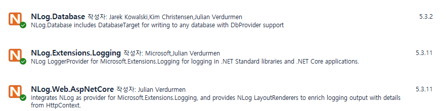 dotnet add package NLog.Web.AspNetCore dotnet add package NLog.Extensions.Logging dotnet add package NLog.Database |